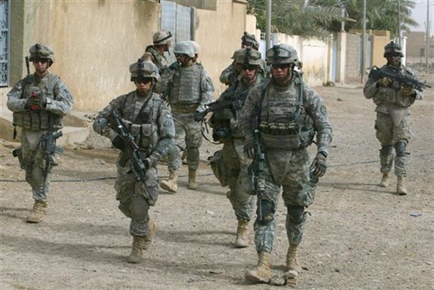 | Des soldats américains patrouillent dans un village près de Baquba dans la province de Diyala, à environ 50 km au nord-est de Bagdad. |