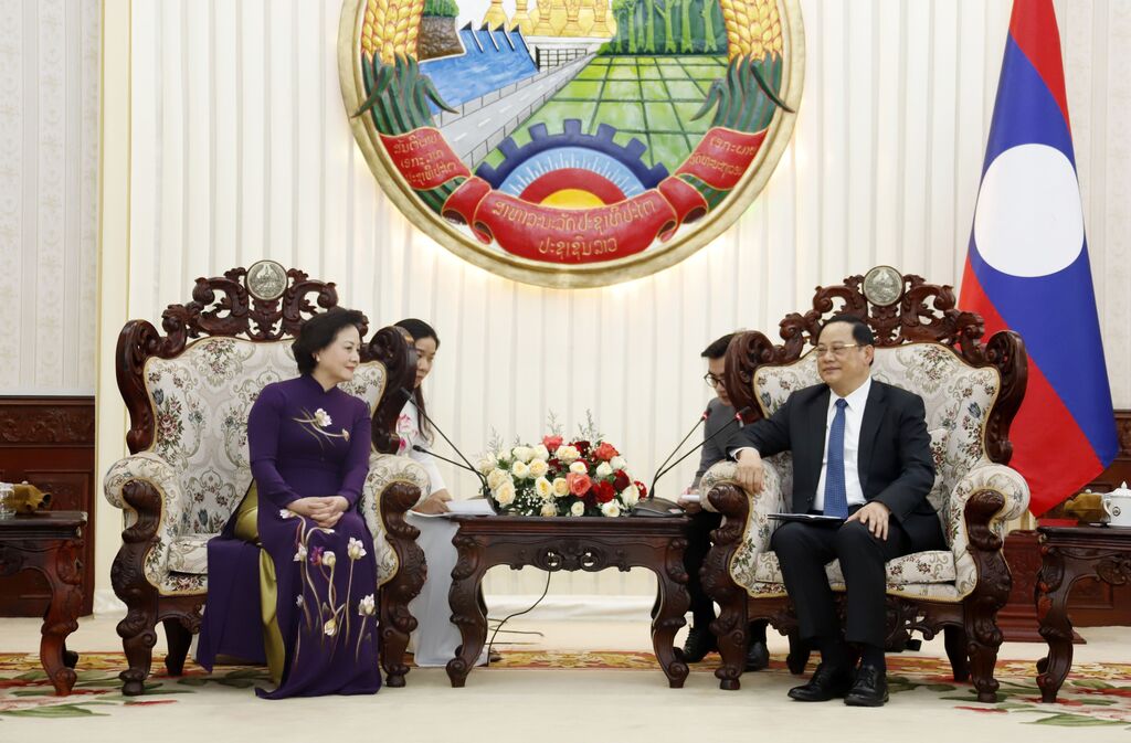 | Lors de la rencontre entre la ministre vietnamienne de l'Intérieur, Pham Thi Thanh Trà, et le Premier ministre lao, Sonexay Siphandone, le 26 mars à Vientiane. |