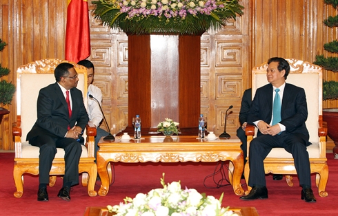 | Le Premier ministre Nguyên Tân Dung (droite) et le président de l'Organisation de l'industrie informatique Asie-Océanie (ASOCIO), Abdullah Kafi, le 29 octobre à Hanoi. |