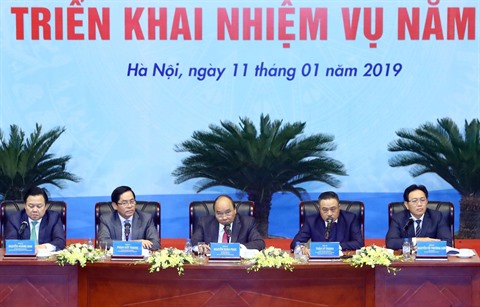 | Le PM Nguyên Xuân Phuc (centre) à la conférence-bilan de 2018 de PetroVietnam. |