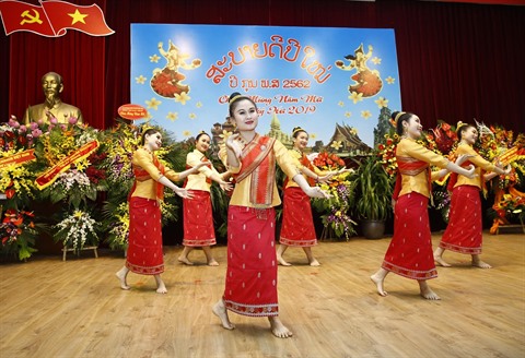 | Les jeunes laotiens acceuillent leur Têt Bunpimay par les danses traditionnelles. |
