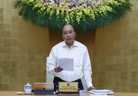 | Le Premier ministre Nguyên Xuân Phuc s’exprime lors de la réunion de la permanence du gouvernement sur la prévention et le contrôle du COVID-19, le 7 mai. |