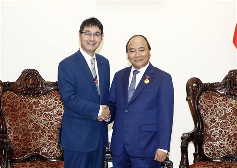 | Le Premier ministre vietnamien Nguyên Xuân Phuc (droite) et le conseiller spécial de son homologue japonais Shinzo Abe, Kawai Katsuyuki, le 18 juillet à Hanoï. |