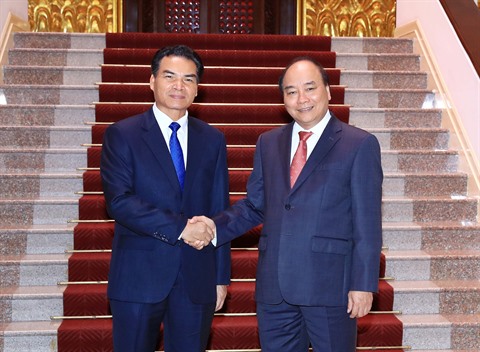 | Le Premier ministre Nguyên Xuân Phuc (droite) et le ministre-président du bureau du Premier ministre laotien Phet Phomphiphak. |