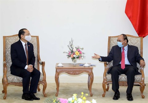 Le Premier ministre Nguyên Xuân Phuc a parlé au diplomate cambodgien de sa récente conversation téléphonique avec son homologue cambodgien Hun Sen sur la lutte contre la pandémie de COVID-19 et de la décision du Vietnam de fournir une aide sous forme de fournitures médicales d'une valeur de 100.000 dollars au Cambodge.