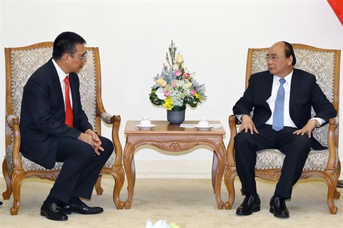 | Le Premier ministre Nguyên Xuân Phuc (droite) et le PDG du groupe thaïlandais SCG, Roongrote Rangsiyopash, le 26 février à Hanoï. |