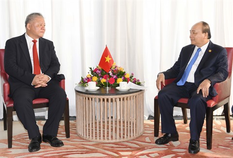| Le PM Nguyên Xuân Phuc (droite) et le président de la compagnie PT Nikko Sekuritas Indonésie. |