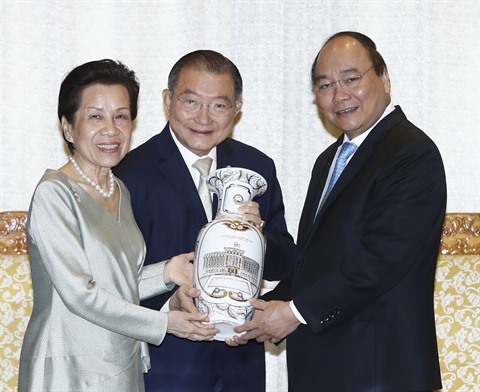 | Remise de cadeau entre le PM Nguyên Xuân Phuc (droite) et le président du groupe thaïlandais TCC le 18 juin à Hanoï. |