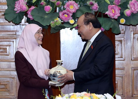 | Le Premier ministre Nguyên Xuân Phuc et le vice-Premier ministre malaisien, Mme Azizah Wan Ismaïl. |
