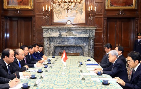Lors de ces rencontres, le Premier ministre Nguyên Xuân Phuc a exprimé sa satisfaction devant le développement fort, intégral et substantiel des relations entre le Vietnam et le Japon après 45 ans d'établissement de relations diplomatiques, ainsi que les progressions actives dans les échanges et la coopération entre les organes législatifs des deux pays. Le Premier ministre a affirmé sa volonté de développer les relations entre le Vietnam et le Japon sur la base des résultats obtenus conformément aux intérêts et aux aspirations des deux peuples, de continuer à collaborer étroitement sur les questions régionales et internationales d'intérêt commun, et de contribuer activement au maintien de la paix, de la stabilité, de la coopération et du développement dans la région.