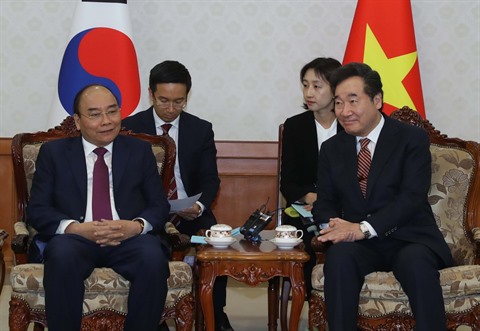 | Le Premier ministre Nguyên Xuân Phuc (gauche) et son homologue sud-coréen Lee Nak-yeon, le 28 novembre en République de Corée. |