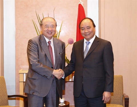 | Le Premier ministre Nguyên Xuân Phuc (droite) avec Takehiko Kakiuchi dans le cadre de sa visite au Japon du 26 au 28 mai. |