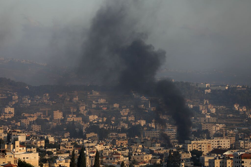 | De la fumée monte après une frappe aérienne israélienne sur la ville de Jénine (Cisjordanie), le 3 juillet. |