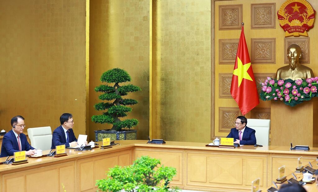 L'objectif de la séance de travail entre le Premier ministre Pham Minh Chinh et l'ambassadeur de République de Corée au Vietnam Choi Young Sam, c'est de déployer et de concrétiser le contenu de l'entretien téléphonique entre le secrétaire général du Parti communiste du Vietnam et président Tô Lâm et le président sud-coréen, Yoon Suk Yeol, ainsi que le contenu des accords de coopération conclus lors de la récente visite du Premier ministre Pham Minh Chinh en République de Corée.