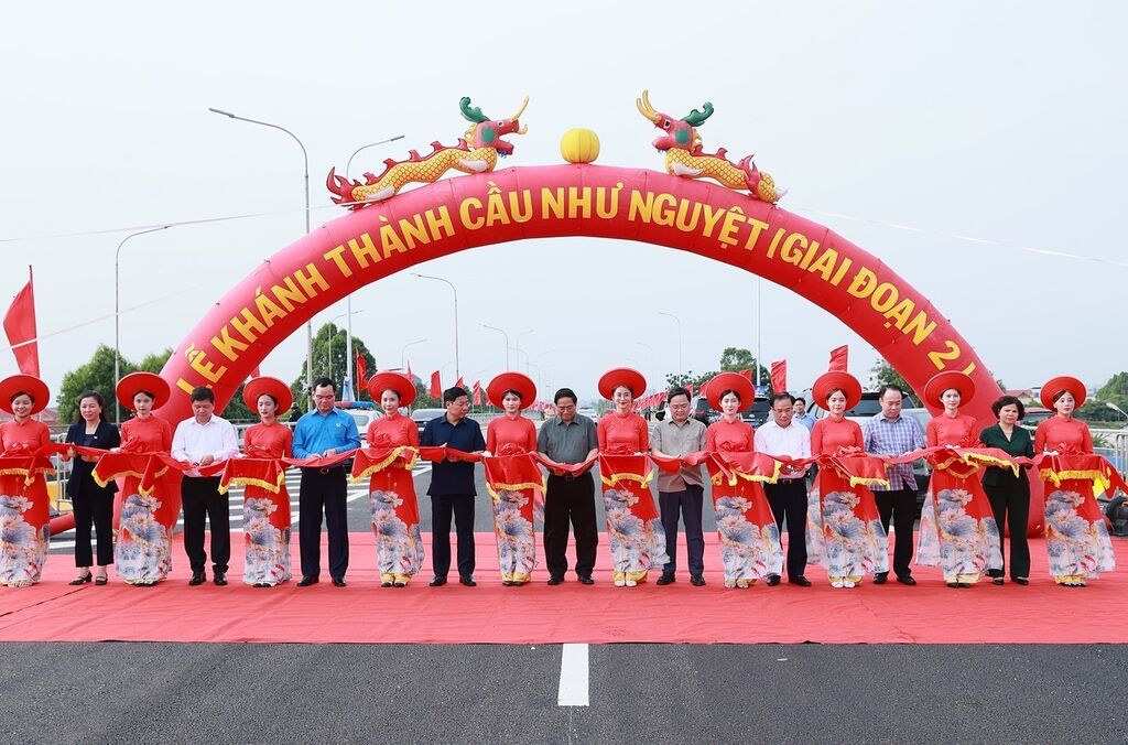 | Le Premier ministre Pham Minh Chinh (centre) coupe le ruban pour inaugurer le pont Nhu Nguyêt 2. |