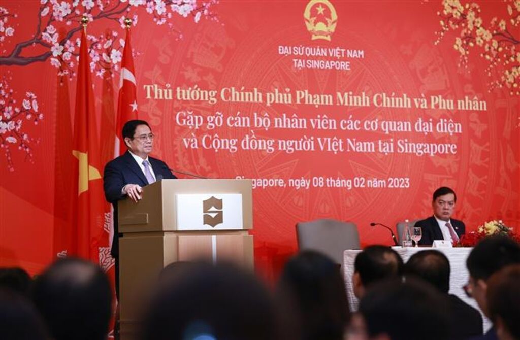 | Le Premier ministre Pham Minh Chinh s'exprime lors d'une rencontre avec la diaspora vietnamienne à Singapour, le 8 février. |