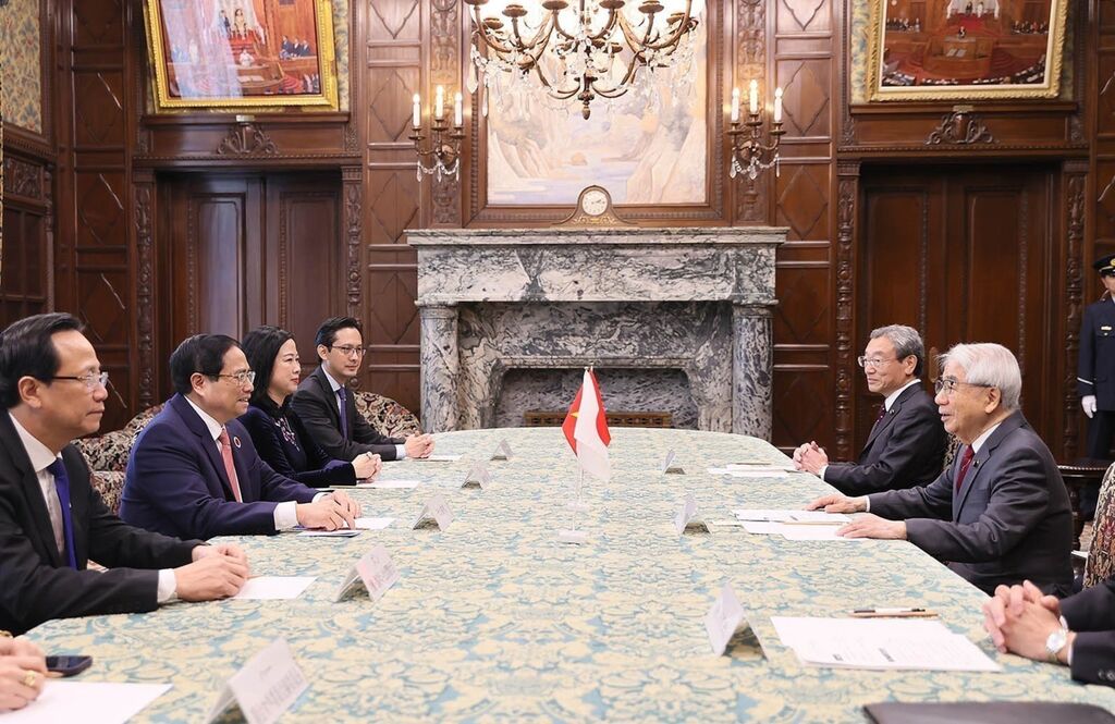 >> Le PM Pham Minh Chinh reçoit un ancien homologue japonais et le PM singapourien