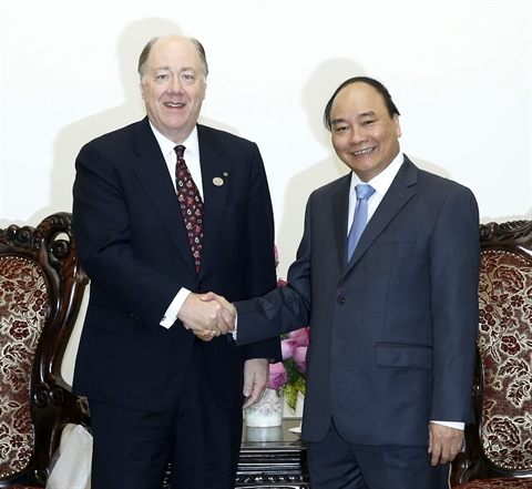 | Le Premier ministre vietnamien Nguyên Xuân Phuc (droite) et le président de l'USABC, Keith Williams, le 24 mai à Hanoi. |