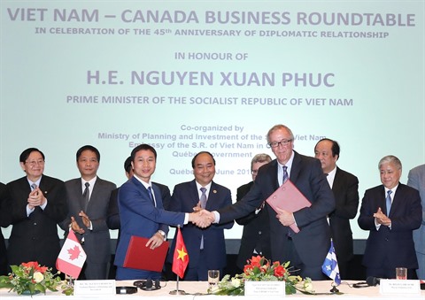 Nguyên Xuân Phuc a dit que les échanges commerciaux bilatéraux actuels de 6 milliards de dollars et l'investissement canadien de 3,5 milliards n'avaient pas encore démontré la capacité des investisseurs canadiens au Vietnam. Il a souligné que les deux parties devraient travailler ensemble pour améliorer les chiffres dans le temps à venir.
