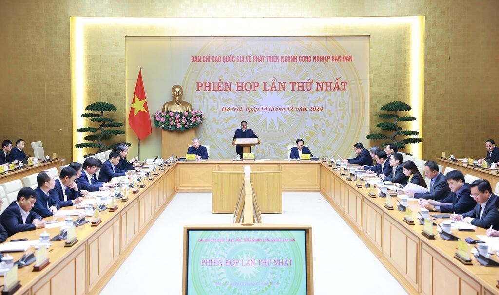 | Le Premier ministre Pham Minh Chinh lors d'une réunion sur l'industrie des semi-conducteurs le 14 décembre 2024 à Hanoï. |