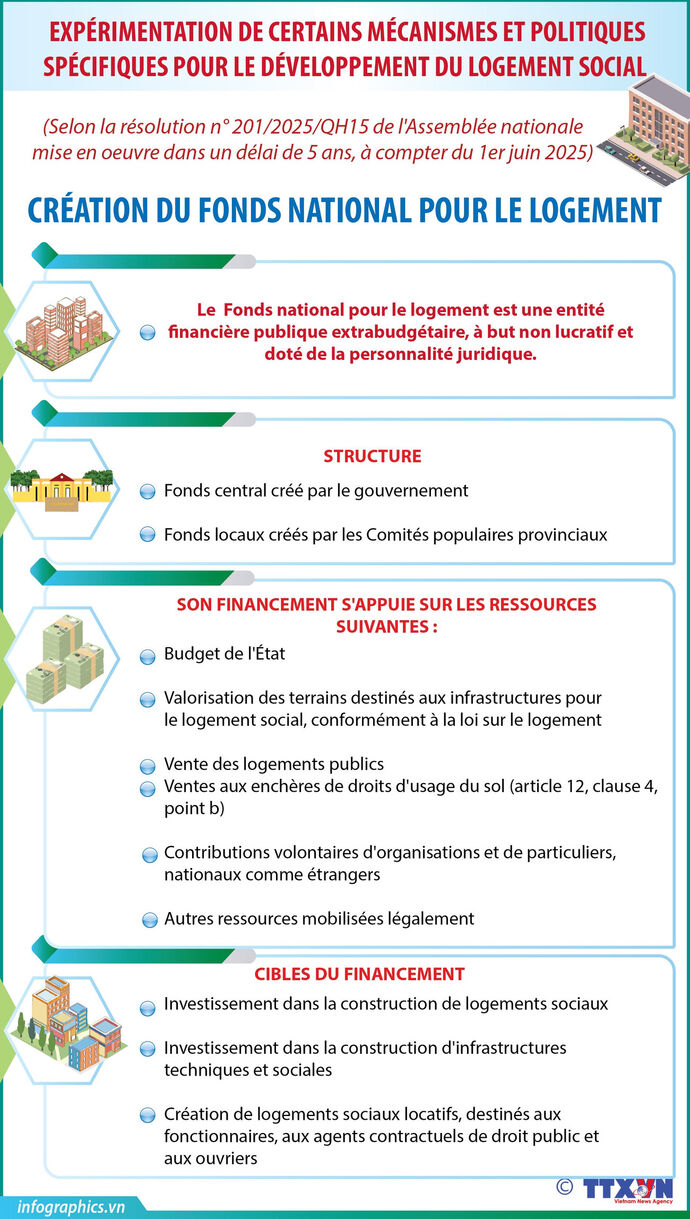 Garantir à chaque citoyen un logement pour vivre et travailler est une grande priorité. Le Premier ministre a approuvé un projet visant à construire au moins un million de logements sociaux pour les personnes à faible revenu et les ouvriers des zones industrielles sur la période 2021-2030, en y ajoutant récemment les fonctionnaires et agents publics en difficulté de logement, dont 100.000 logements doivent être réalisés en 2025.