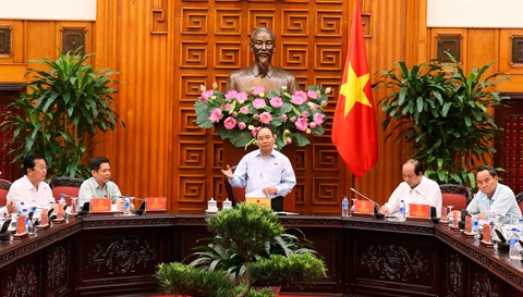 | Le Premier ministre Nguyên Xuân Phuc (centre) à la séance de travail avec les autorités de Soc Trang (Sud) le 21 novembre. |