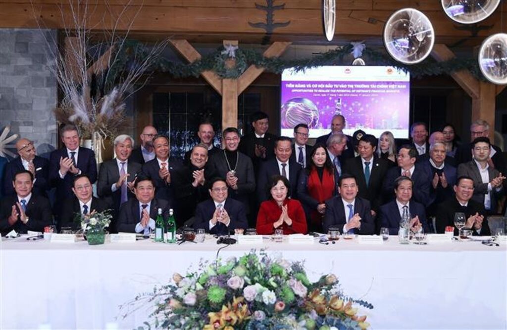 Le Premier ministre Pham Minh Chinh a présidé mercredi 17 janvier (heure locale) un échange de vue avec des représentants de principales banques et fonds d'investissement financiers du monde sur le potentiel et les opportunités d'investir sur le marché financier vietnamien, dans le cadre de la réunion annuelle du Forum économique mondial de Davos 2024 (WEF Davos 2024).