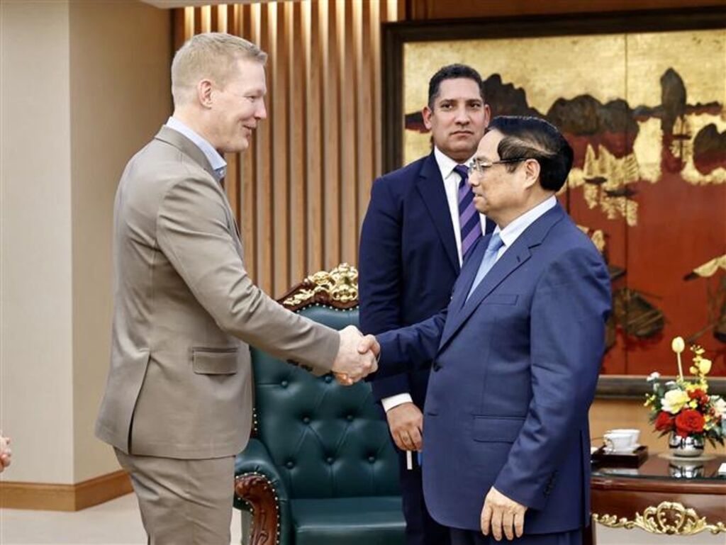 | Le Premier ministre Pham Minh Chinh (droite) et Dennis Nobelius, président et directeur général de la société SYRE. |