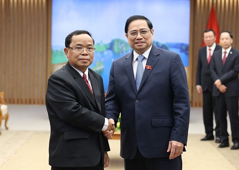 | Le Premier ministre Pham Minh Chinh (droite) a reçu Khamphan Phommaphat, inspecteur général d’État du Laos. |