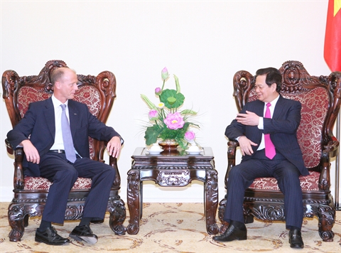 | Le Premier ministre Nguyên Tân Dung (droite) et le directeur général d'Airbus Group, Thomas Enders, le 1er juillet à Hanoi. |