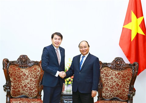 | Le Premier ministre Nguyên Xuân Phuc (droite) et le président du groupe singapourien CapitaLand, Lim Ming Yan, le 27 mars à Hanoï. |