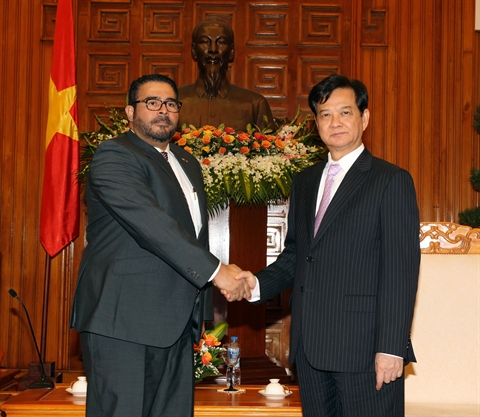 | Le Premier ministre Nguyên Tân Dung (droite) et le nouvel ambassadeur du Panama au Vietnam, Servio Sammodio, le 21 janvier à Hanoi. |