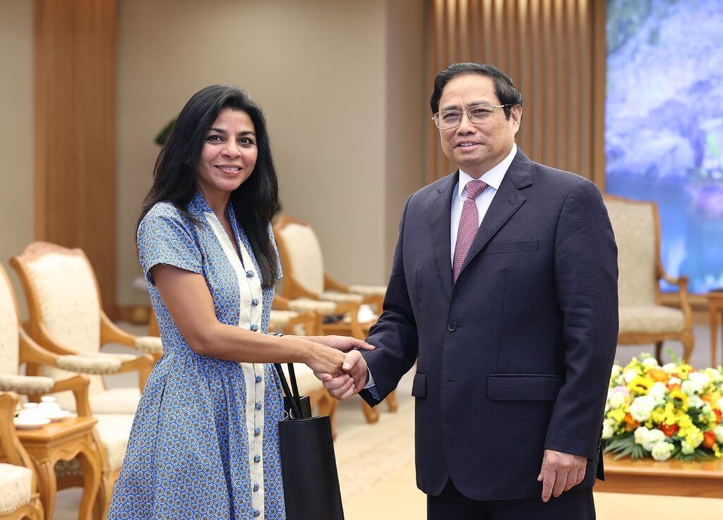 | Le Premier ministre Pham Minh Chinh et Era Dabla-Norris, cheffe de l'équipe de supervision du FMI sur la macroéconomie et la finance et la monnaie des pays membres. |