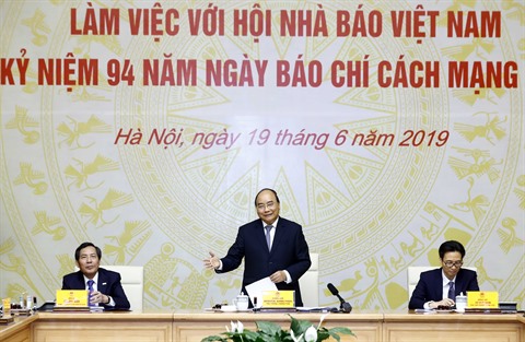 | Le Premier ministre Nguyên Xuân Phuc prends la parole lors de sa rencontre avec les dirigeants de l'Association des journalistes vietnamiens. |