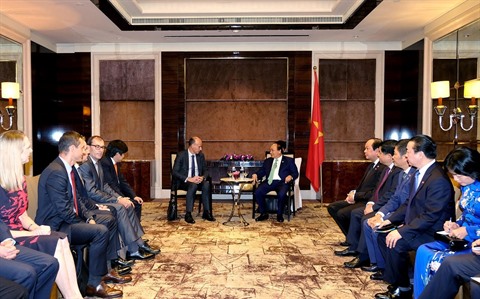 Le Premier ministre Nguyên Xuân Phuc a saisi cette occasion pour leur présenter la situation économique du Vietnam, dont une croissance élevée au premier trimestre 2018. Vu sa stabilité socio-politique et économique, sa population de 93 millions de personnes, un revenu par habitant de 2.400 dollars et une classe moyenne représentant 13% de la population, le Vietnam est un marché à grand potentiel.