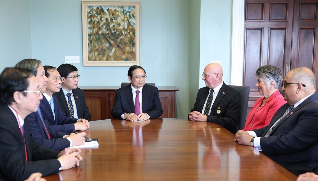 | Rencontre entre le Premier ministre Pham Minh Chinh et le président de l'Association d'amitié Nouvelle-Zélande - Vietnam, le Professeur Roberto Rabel, le 11 mars à Wellington. |
