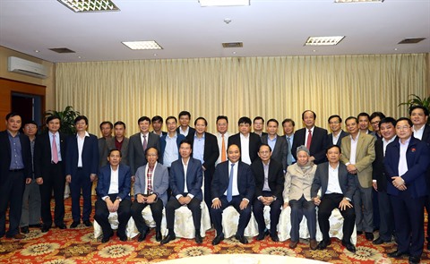 | Le Premier ministre Nguyên Xuân Phuc (1er rang, 4e à gauche) lors de la rencontre, le 22 janvier à Hanoï avec des responsables des journaux. |