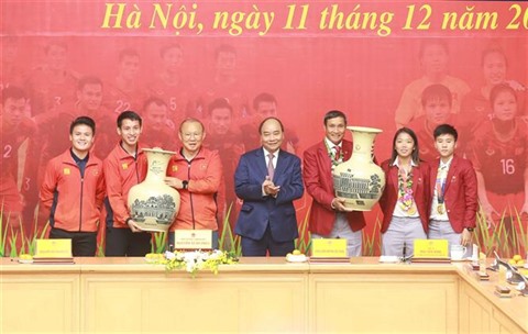 Le Premier ministre Nguyên Xuân Phuc a souligné les exploits des footballeuses qui ont été couronnées six fois aux SEA Games, de l’équipe de football masculin ainsi que des sportifs de la délégation nationale pour leurs 98 médailles d'or et près de 200 d'argent et de bronze, ainsi que la 2e place du Vietnam au classement des médailles par nations.