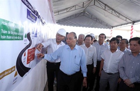 | Le PM Nguyên Xuân Phuc (1er plan, gauche) a salué la province de Tiên Giang, le principal investisseur du projet de construction de l'autoroute Trung Luong - My Thuân. |