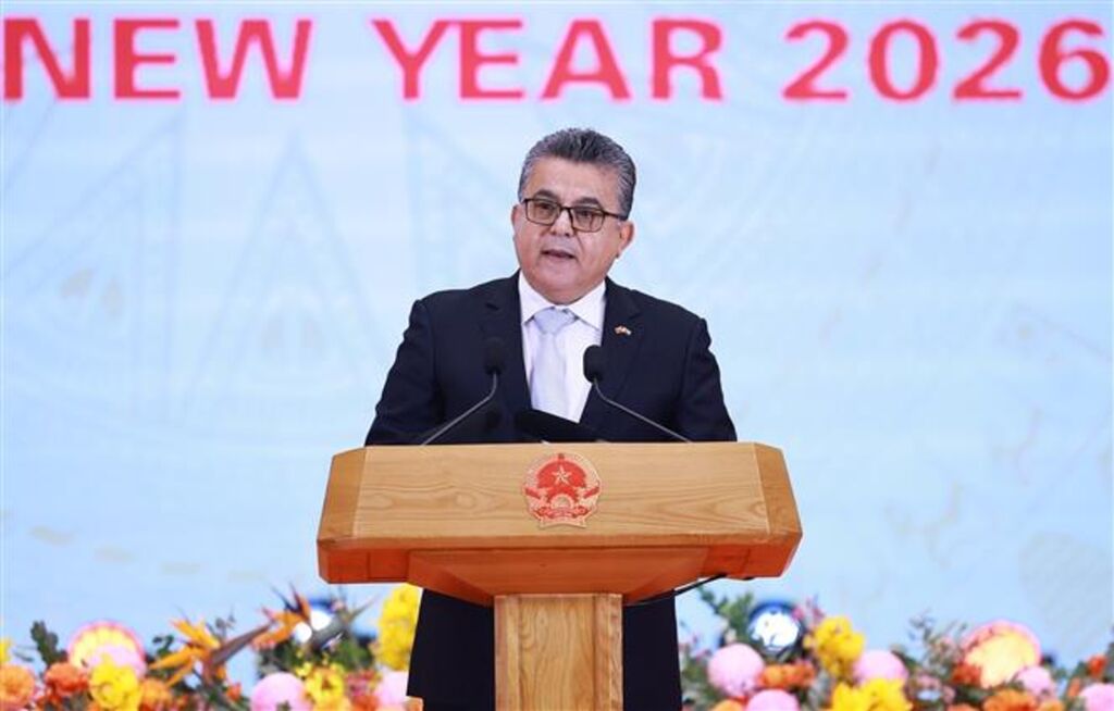 Au nom du corps diplomatique, l’ambassadeur Saadi Salama a salué les réalisations remarquables du Vietnam en 2025, notamment le succès du XIVᵉ Congrès du Parti et les progrès socio-économiques enregistrés. Il a affirmé que le Vietnam entrait dans une nouvelle phase de développement dynamique, renforçant son rôle de partenaire fiable et d’un membre actif et responsable sur la scène internationale.