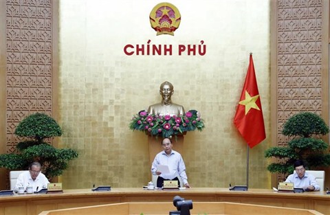 | Le Premier ministre Nguyên Xuân Phuc s'exprime lors d'une réunion de la permanence du gouvernement, le 15 mai à Hanoï. |