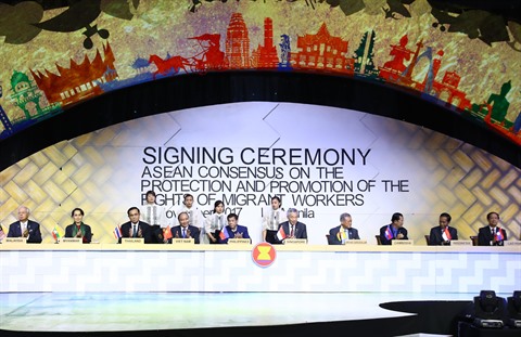 Mardi après-midi 14 novembre, le Premier ministre Nguyên Xuân Phuc et les dirigeants de l’ASEAN ont signé le Consensus de l’ASEAN sur la protection et la promotion des droits des travailleurs immigrés.