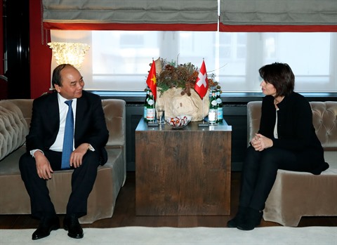 | Le PM Nguyên Xuân Phuc et la présidente suisse Doris Leuthard le 19 janvier à Davos. |