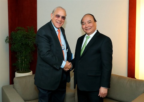 | Le PM Nguyên Xuân Phuc (droite) rencontre le secrétaire général de l'OCDE, Angel Gurria dans le cadre du Forum économique mondial le 20 janvier à Davos. |