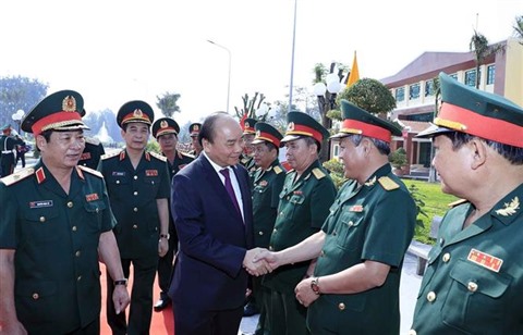 | Le Premier ministre Nguyên Xuân Phuc (centre) a visité le 19 janvier les représentants du Collège de formation des officiers de l’armée 2 |