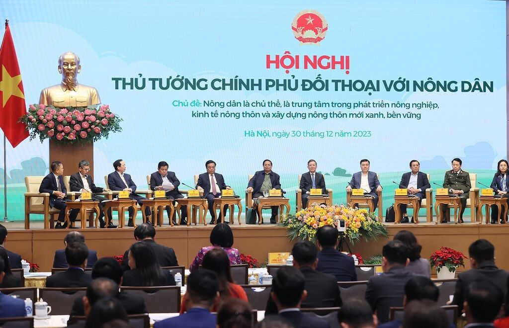 | Le Premier ministre Pham Minh Chinh (au centre) préside le dialogue avec les agriculteurs en 2023 |
