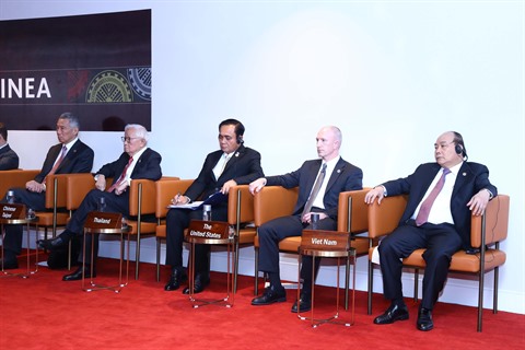 | Le Premier ministre Nguyên Xuân Phuc (1er à droite), lors du dialogue entre les dirigeants de l'APEC et l'ABAC. |