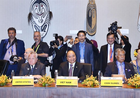 | Le Premier ministre Nguyên Xuân Phuc (centre) au dialogue entre les dirigeants de l’APEC et ceux de 14 États insulaires du Pacifique. |