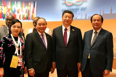 | Le PM Nguyên Xuân Phuc (deuxième, à gauche) rencontre le président chinois Xin Jinping (deuxième, à droite) le 8 juillet en Allemagne. |