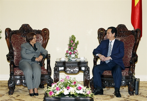 | Le Premier ministre Nguyên Tân Dung et la ministre cubaine des Finances et des Prix, Lina Pedraza Rodriguez, le 18 septembre à Hanoi. |